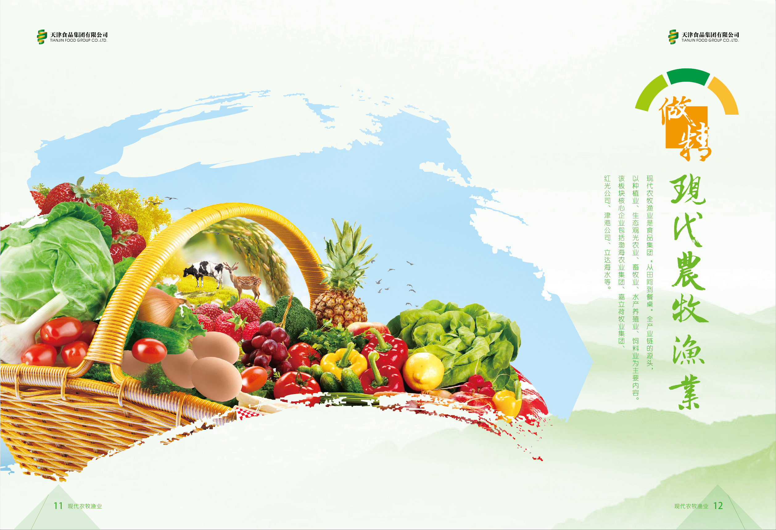 现代农牧渔业是食品集团“从田间到餐桌”全产业链的源头,以种植业、生态观光农业、畜牧业、水产养殖业、饲料业为主要内容。该板块核心企业包括渤海农业集团黄庄洼米业公司、津港公司、龙呈嘉益公司、晶宝温泉农庄、嘉立荷牧业集团公司、广源畜禽公司、河北津奥牧业公司、立达海水公司和饲料公司等。