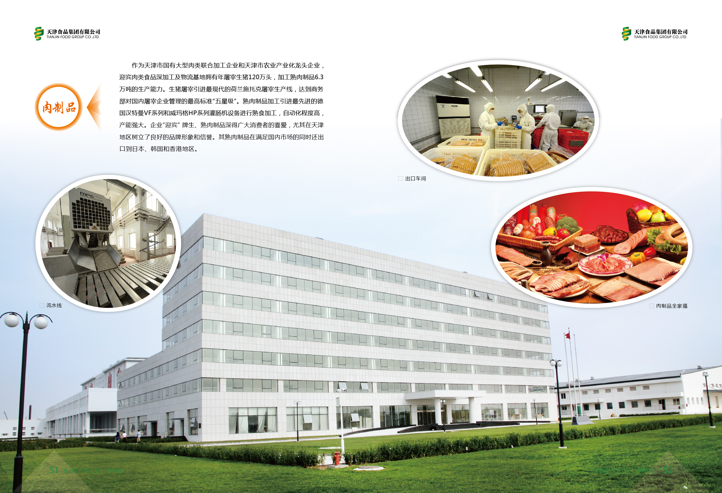 Tianjin No.2 Commercial Yingbin Meat Product Co., Ltd. is a large state-owned meat processing company and a leader in Tianjin’s agriculture industrialization process. It slaughters 1.2 million hogs annually and processes 63,000 tons of cooked meat products. “Yingbin” meat products are very popular among consumers, and have built a good brand image and a reputation especially in Tianjin. While satisfying the needs in domestic market, the cooked meat products are also exported to Japan, South Korea and Hong Kong.