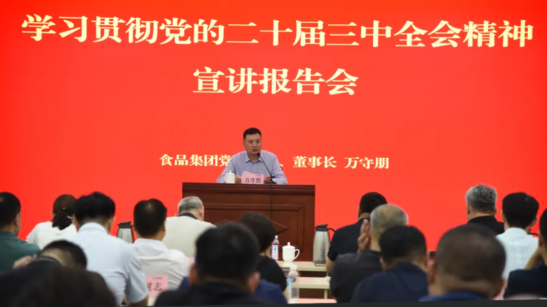 报告会上,万守朋紧紧围绕习近平总书记在党的二十届三中全会上的重要讲话和全会《决定》,深入宣讲了党的二十届三中全会的重大意义,深刻阐释了进一步全面深化改革的指导思想、总目标和重大原则,并对《决定》提出的关于深化国资国企改革的重大举措谈了认识体会,对食品集团切实抓好各项改革任务的贯彻落实进行了深刻思考和详细解读。