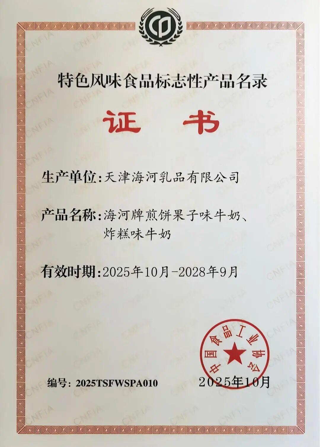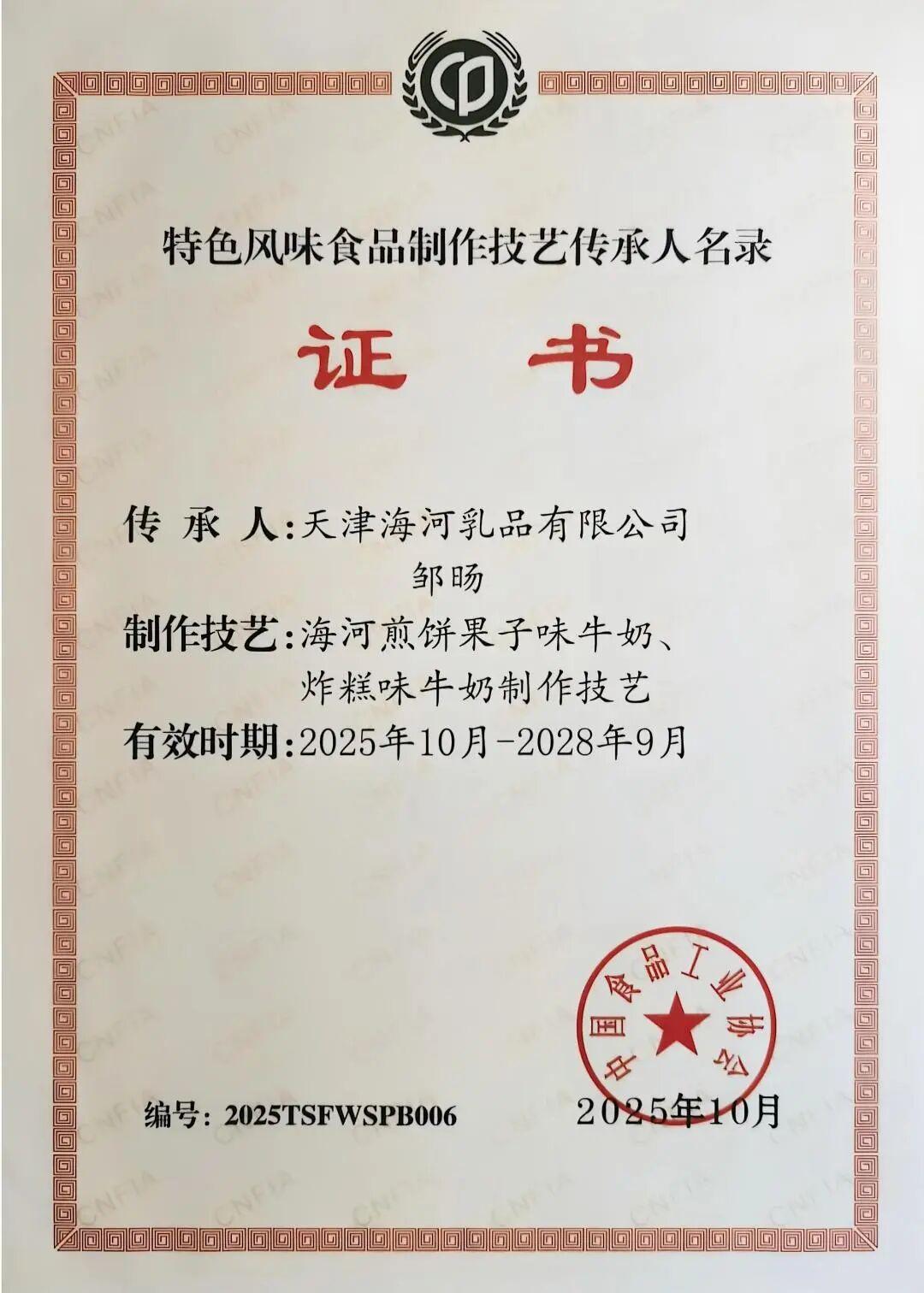 海河乳品公司入选第二批“特色风味食品标志性产品、制作技艺传承人名录”