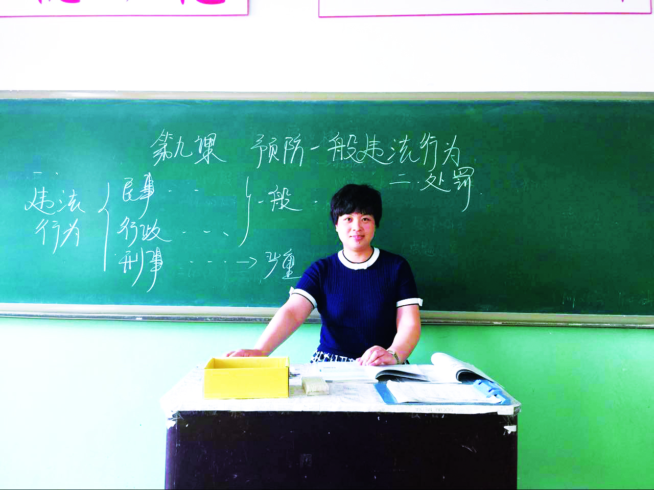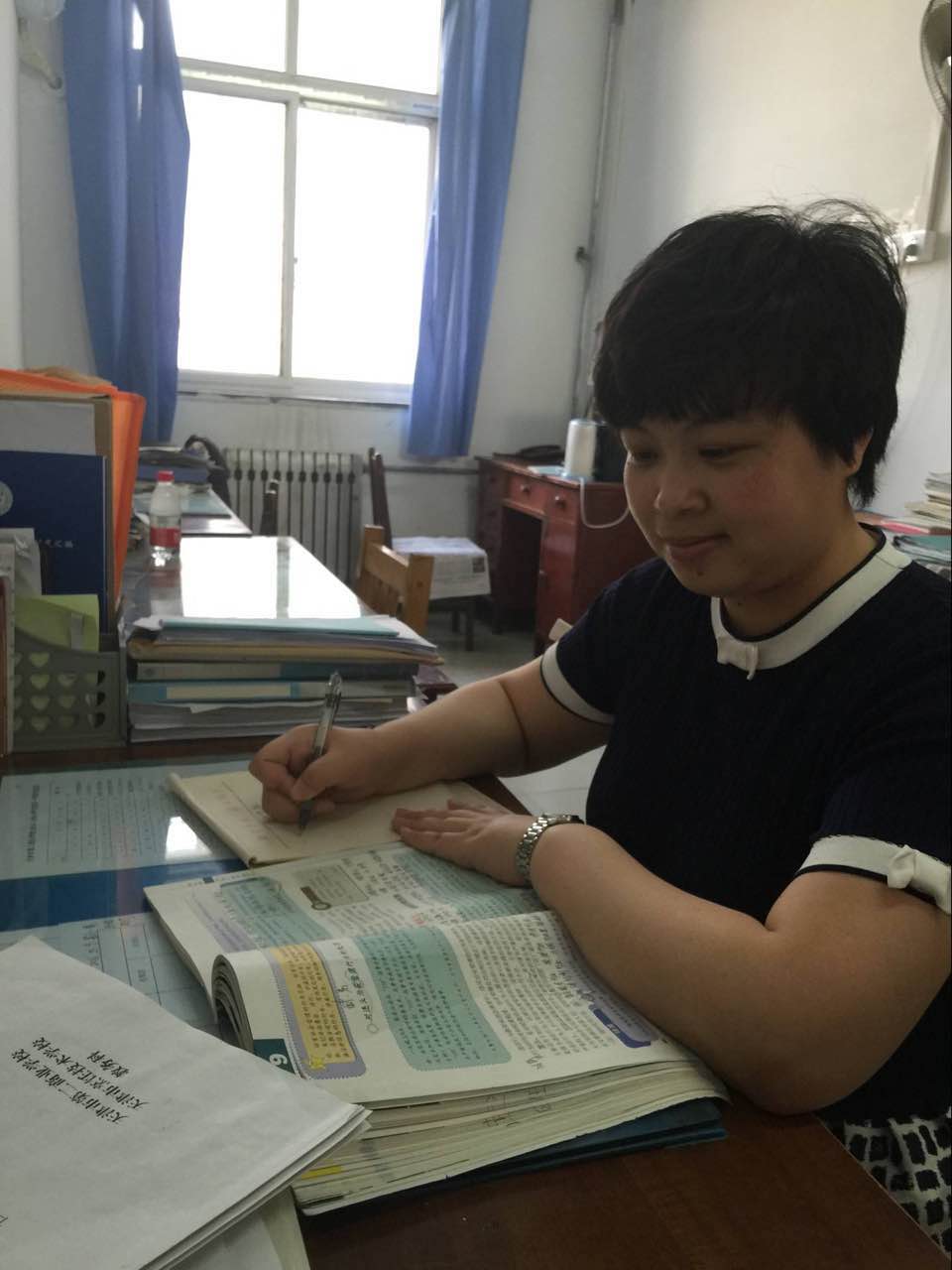赵亚静作为被学校培养的学科带头人,作为德育教研室主任,她深知自己身上的担子很重。所以,她围绕学校德育工作,时刻走在教改的前沿。组织教研室教师开展“五课”教研,提高教师教学能力。指导成立了学校心理咨询室,建立并完善学生心理健康成长档案,为今后因材施教,更好的进行学生管理提供了依据。还指导成立了校模拟法庭小组,定期排练,并在全校范围内进行表演,不但提高了学生的法律意识,还激发了学生德育课的学习兴趣。