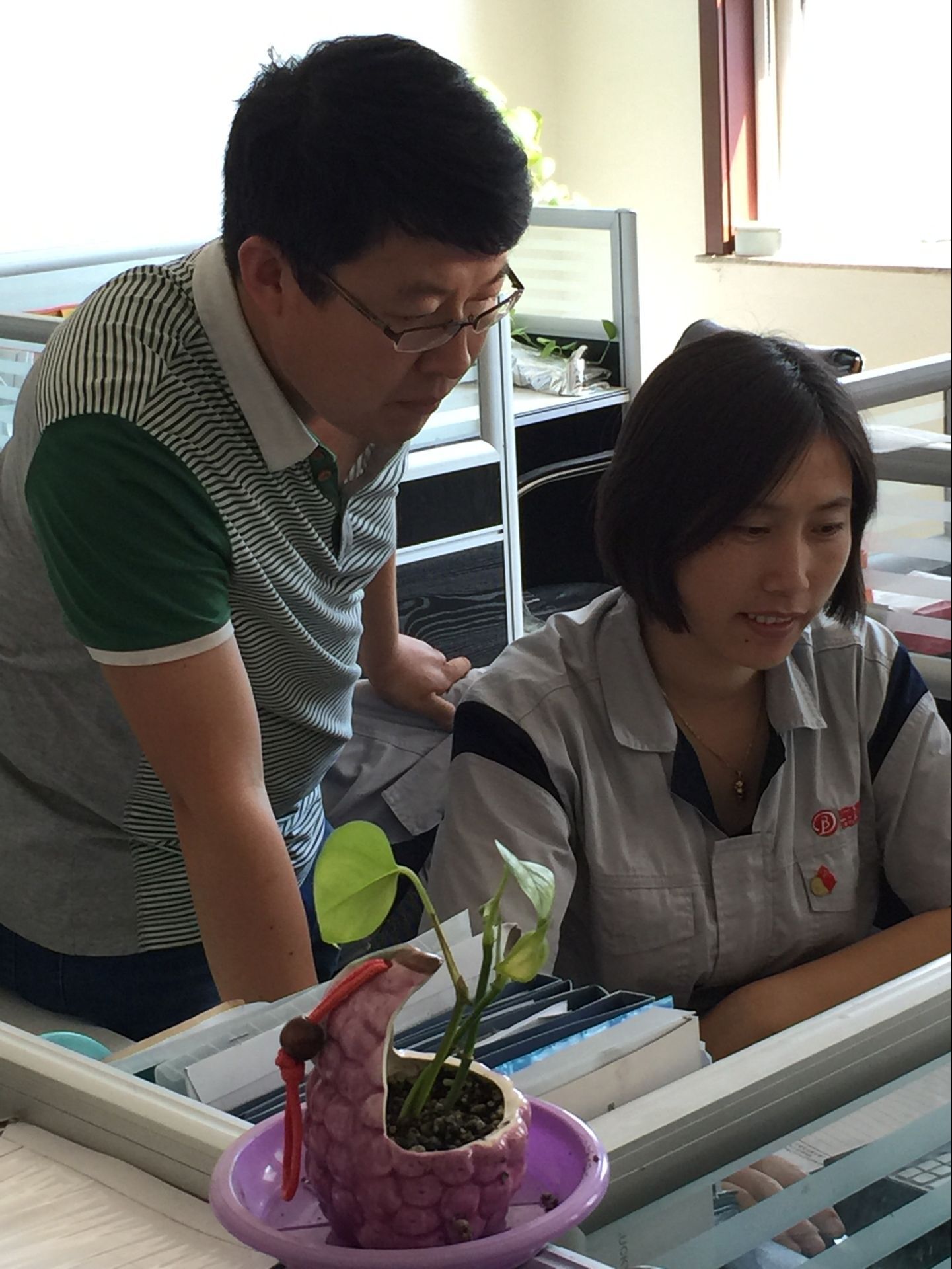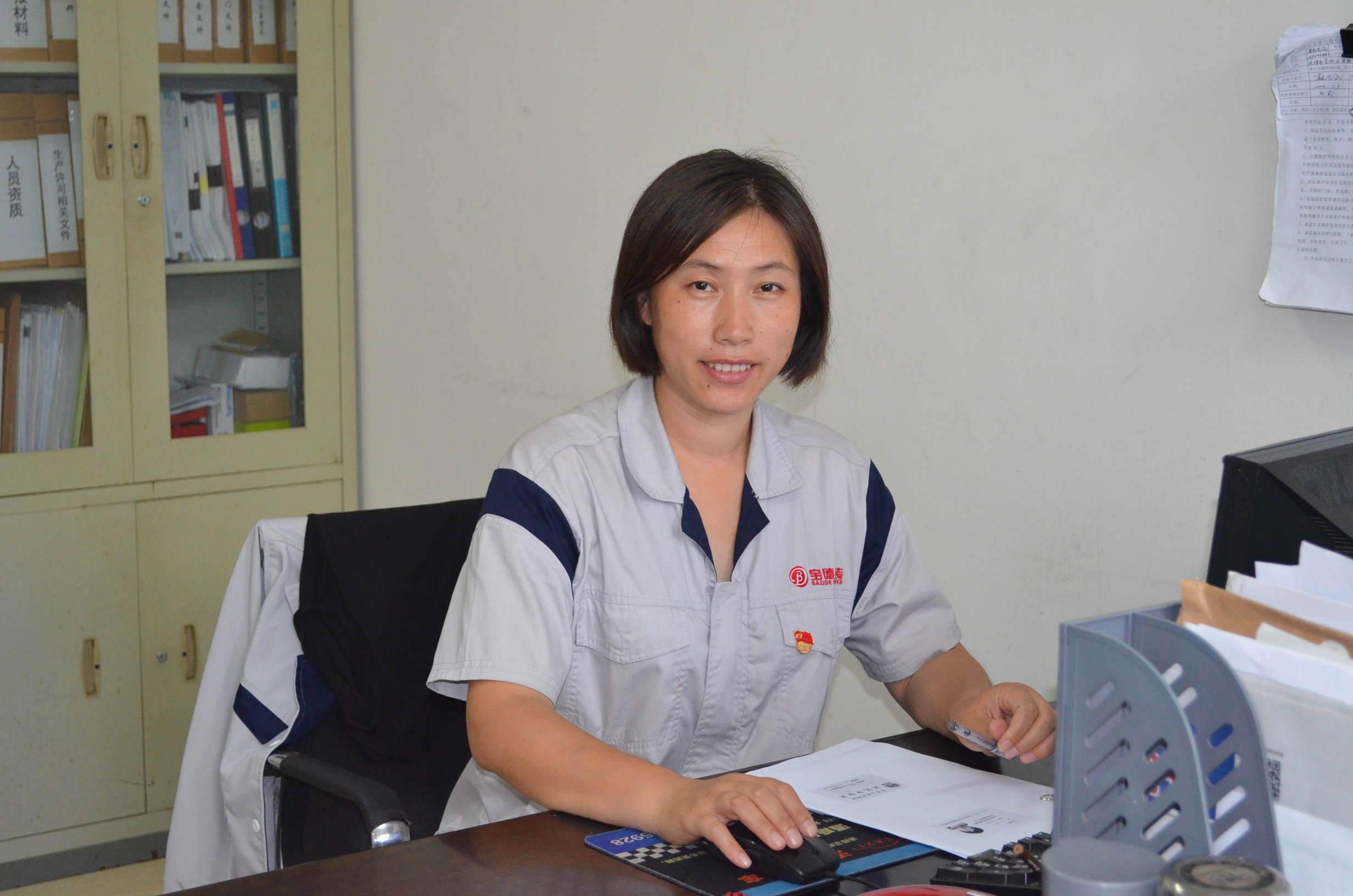 “宫姐,我要充饭卡”、“宫姐,帮我领一支笔”、“宫姐,有两位新入职的员工,你带领他们熟悉一下公司环境”、“宫姐,联系一下打印机维修公司,打印机出故障了......”早上七点半,在宝德公司办公室里,办公室主任宫凤贤开始了一天既琐碎又忙碌的工作。只见她面带笑容,和颜悦色,跟大家打招呼的同时,熟练利索地帮助每位同事解决问题。虽然,她也是一名80后,但是大家都喊她“宫姐”。