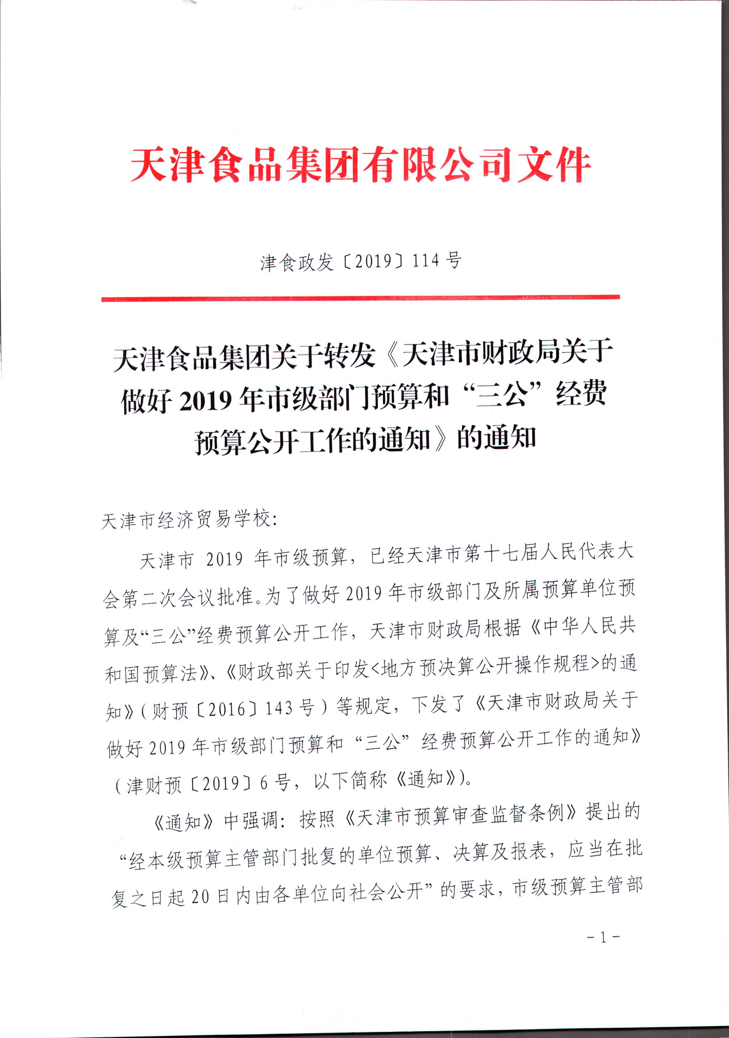 OB体育官方网 集团关于转发《天津市财政局关于做好2019年市级部门预算和“三公”经费预算公开工作的通